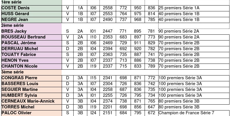 Voici la liste des joueurs du comité qualifiés pour le championnat de France des séries 1,2,3 qui auront lieu les 30 et 31 mai au Gymnase Lilian Thuram