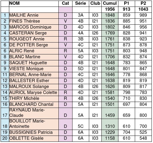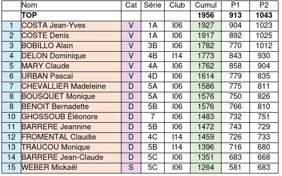 Voici au fur et à mesure des transmissions les résultats des qualifs VDR du samedi 15 novembre.