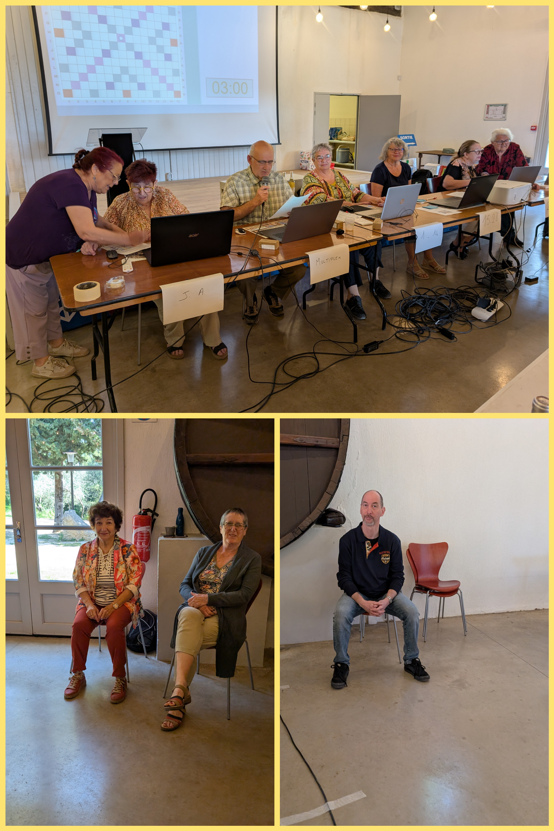 Les trois parties lues par Gérard, Danielle et Anne-Marie ont réservé quelques surprises aux joueurs avec une 2ème partie très spéciale en 15 coups avec des scrabbles pas forcément connus : Aroidée, strigide, diathèse, empalma et aouteron!... Des pourcentages inhabituels pour des joueurs aguerris, le 3è à -80 la 10è à -159, la 20è à -251 !!! Mais le Montpelliérain Patrick VIGROUX au top !!!!!!! Il remporte d'ailleurs le tournoi en local et sur l'ensemble du multiplex. Bravo à notre champion !!
