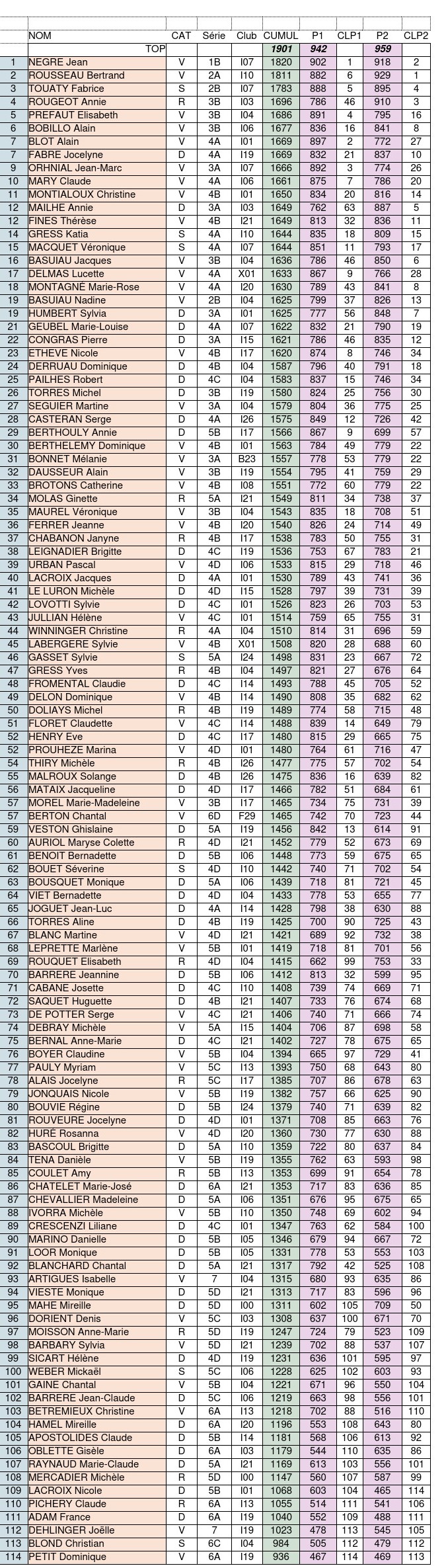 Seraient qualifiés pour Vichy grâce à ce tournoi : Vermeil : Jean NEGRE et Jean-Marc ORHNIAL . Diamant: Marie-Louise GEUBEL et Dominique DERRUAU. Rubis : Annie ROUGEOT et Christine WINNINGER qui rejoindraient les 31 joueurs VDR du comité déjà qualifiés (voir ici)