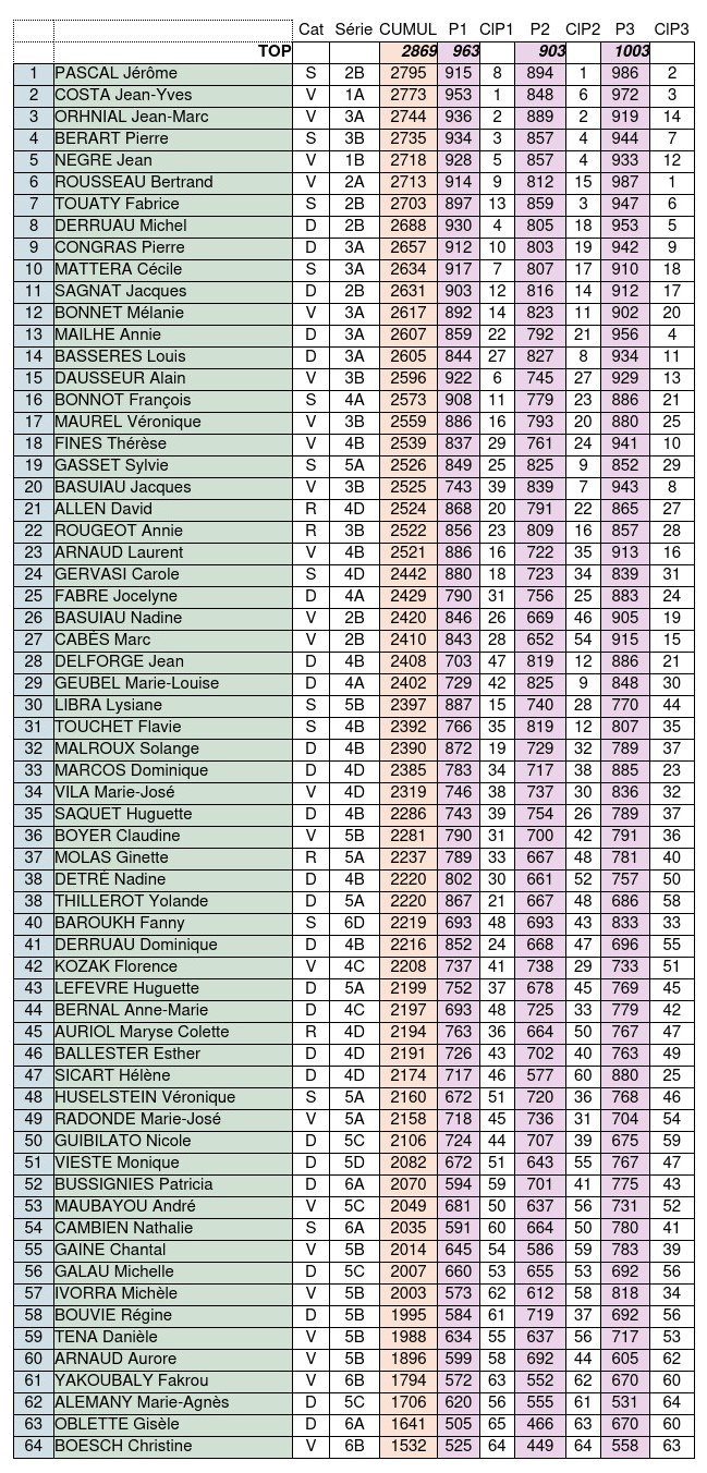 Voici les résultats globaux avant le détail du palmarès et l'annonce des joueurs qui se sont qualifiés pour le championnat de France grâce à ce tournoi.