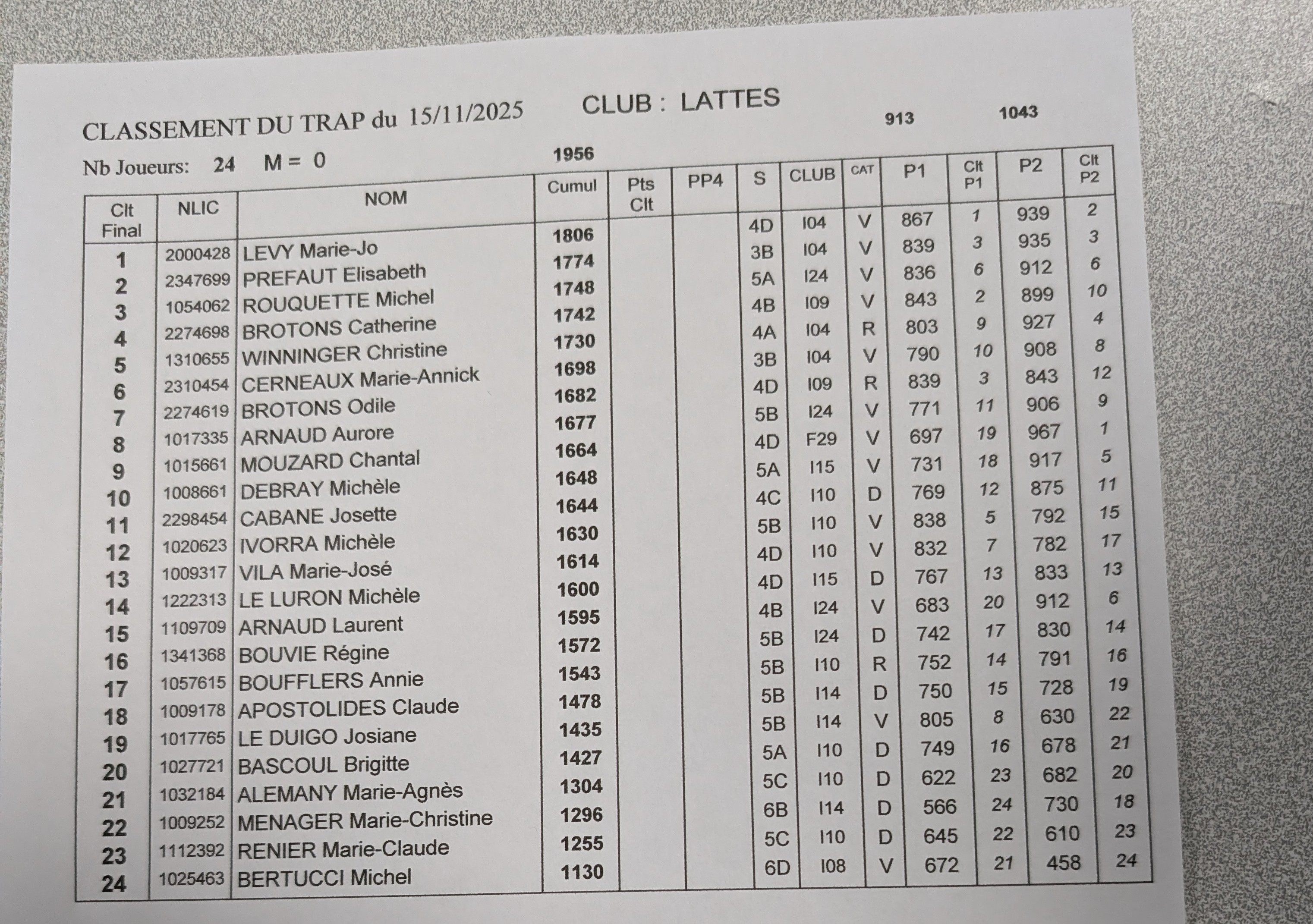 Vainqueure à Lattes : Marie-Jo LEVY (Montpellier)